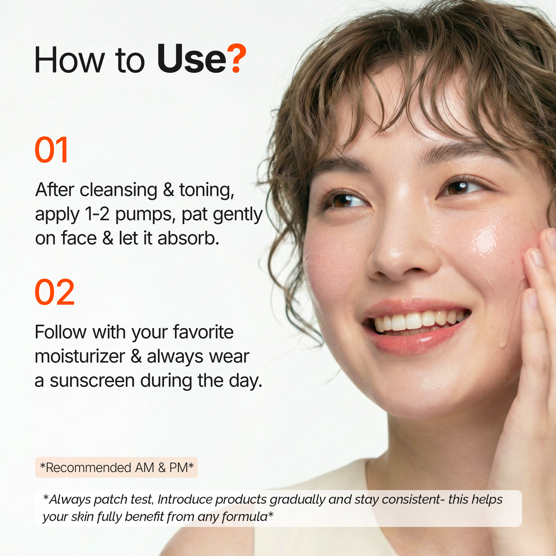 Apply 2–3 drops to clean, dry skin. Use once or twice daily. For daytime use, follow with sunscreen.